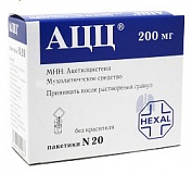 ACETYLCYSTEINE (Rec.INN) Фармакологическое действие Муколитическое средство. Разжижает мокроту, увеличивает ее объем, облегчает выделение, способствует отхаркиванию. Действие ацетилцистеина связано со способностью его сульфгидрильных групп разрывать дисульфидные связи кислых мукополисахаридов мокроты, что приводит к деполяризации мукопротеидов и уменьшению вязкости слизи. Сохраняет активность ...