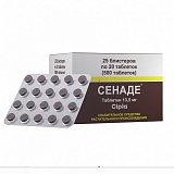 Сенаде таблетки по 13,5 мг №500 (20х25) Производитель Медитеб Спешиалитиз Пвт. Лтд для "Ципла Лтд", Индия Международное название Senna glycosides Код АТС AСредства, влияющие на пищеварительную систему и метаболизм A06Слабительные средства A06AСлабительные средства A06ABКонтактные слабительные средства A06AB06Гликозиды сенны Фармакотерапевтическая группа Слабительные контактные средства....